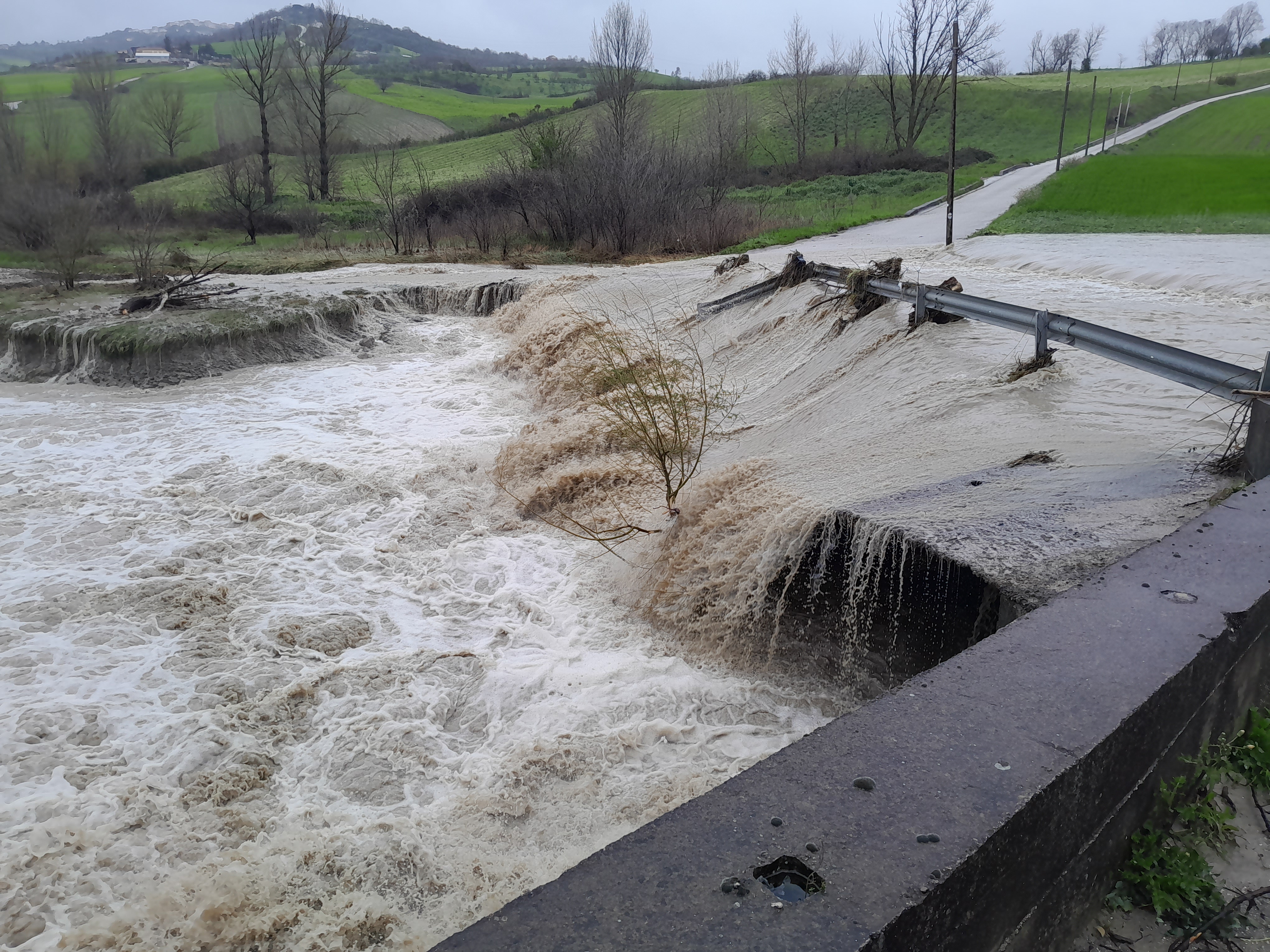 Al momento, no si possono valutare danni sia alla strada interrotta alla località Molino e sia alle colture sulle sponde circostanti il torrente.
