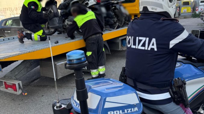 Nella mattinata odierna, nell’ambito dell’intensificazione dei controlli predisposti dalla Questura di Napoli a Secondigliano, personale della Polizia di Stato e nello specifico del Commissariato di Secondigliano, i Nibbio dell’Ufficio Prevenzione Generale e Soccorso Pubblico, i Carabinieri della Stazione di San Pietro a Patierno, personale della Polizia Locale di Napoli, U.O. Tutela del Patrimonio, U.O. Secondigliano, U.O. Motociclisti, U.O. Veicoli Abbandonati, personale dei Vigili del Fuoco e dei tecnici dell’ Enel hanno effettuato un servizio straordinario di controllo del territorio nel quartiere di Secondigliano e nello specifico in via della Bussola.