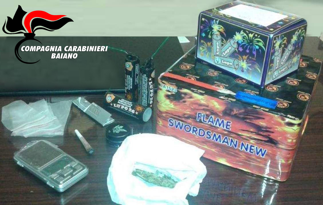 In particolare, i Carabinieri della Stazione di Montoro Inferiore coadiuvati dai colleghi dell’Aliquota Radiomobile di Baiano, nel pattugliare il territorio, procedevano al controllo del giovane, già noto alle Forze dell’Ordine, il quale era alla guida della sua autovettura. Effettuata una perquisizione all’interno del veicolo veniva rivenuta, occultata nel portaoggetti, una sigaretta di marijuana parzialmente combusta. Nella circostanza il pregiudicato, opportunamente invitato dagli agenti, rifiutava di sottoporsi ad accertamenti presso idonea struttura sanitaria, per verificare se stesse guidando sotto l’influenza di sostanze stupefacenti. I militari operanti decidevano di estendere la perquisizione anche alla sua abitazione rinvenendo, accuratamente occultati all’interno di un cassetto della camera da letto, circa 20 grammi di marijuana, già suddivisa in dosi confezionate in bustine di cellophane ed un bilancino di precisione. Durante la perquisizione domiciliare venivano rinvenuti anche artifizi pirotecnici di detenzione e vendita proibita, contenenti polvere da sparo per un peso complessivo di oltre 5 kg.