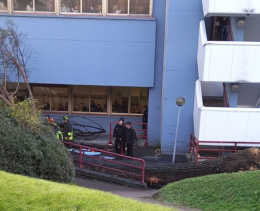 I tre giovani, che si trovavano al campus per seguire un corso del Tfa (Tirocinio Formativo Attivo), sono stati colpiti dal tronco. Uno di loro ha riportato un grave trauma cranico ed è stato trasportato con urgenza in ospedale. Gli altri due hanno riportato ferite più lievi ma sono stati comunque affidati alle cure del personale sanitario del 118, prontamente intervenuto sul posto.