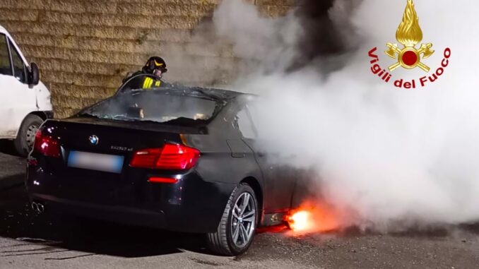 INCENDIO AUTO A CONTRADA: INTERVENTO DEI VIGILI DEL FUOCO E INDAGINI IN CORSO