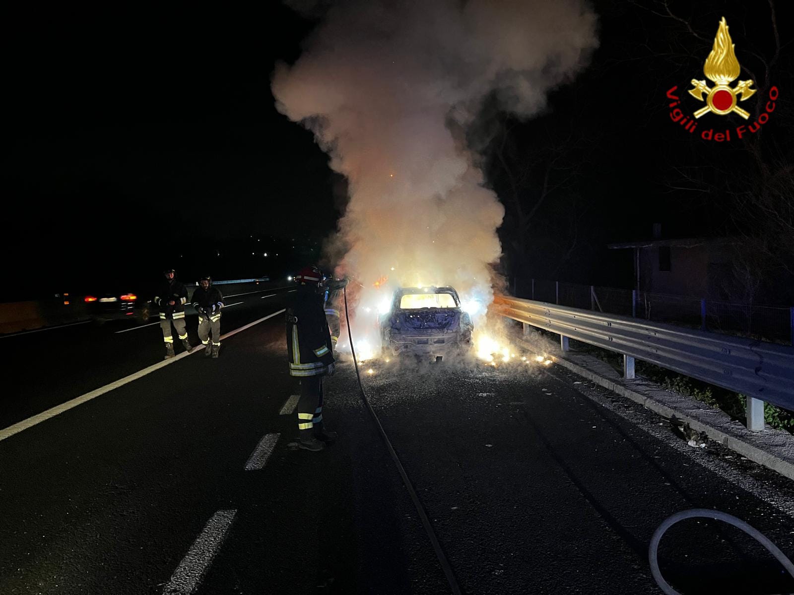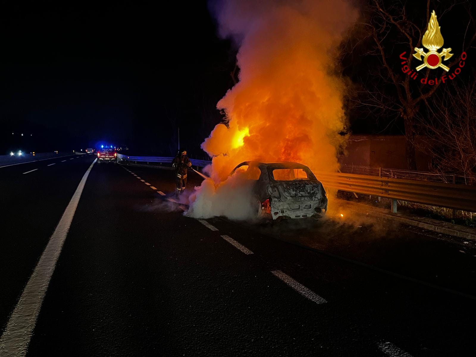 Il secondo intervento si è verificato alle 20:41 sulla A16, in direzione Napoli, al km 25, tra Tufino e Baiano, dove è stato segnalato un incendio che ha coinvolto un’auto ibrida Fiat 500, in marcia. I Vigili del Fuoco sono intervenuti per spegnere le fiamme e mettere in sicurezza la zona, utilizzando anche un’autobotte per garantire il completo spegnimento. Fortunatamente, non si sono registrati feriti.