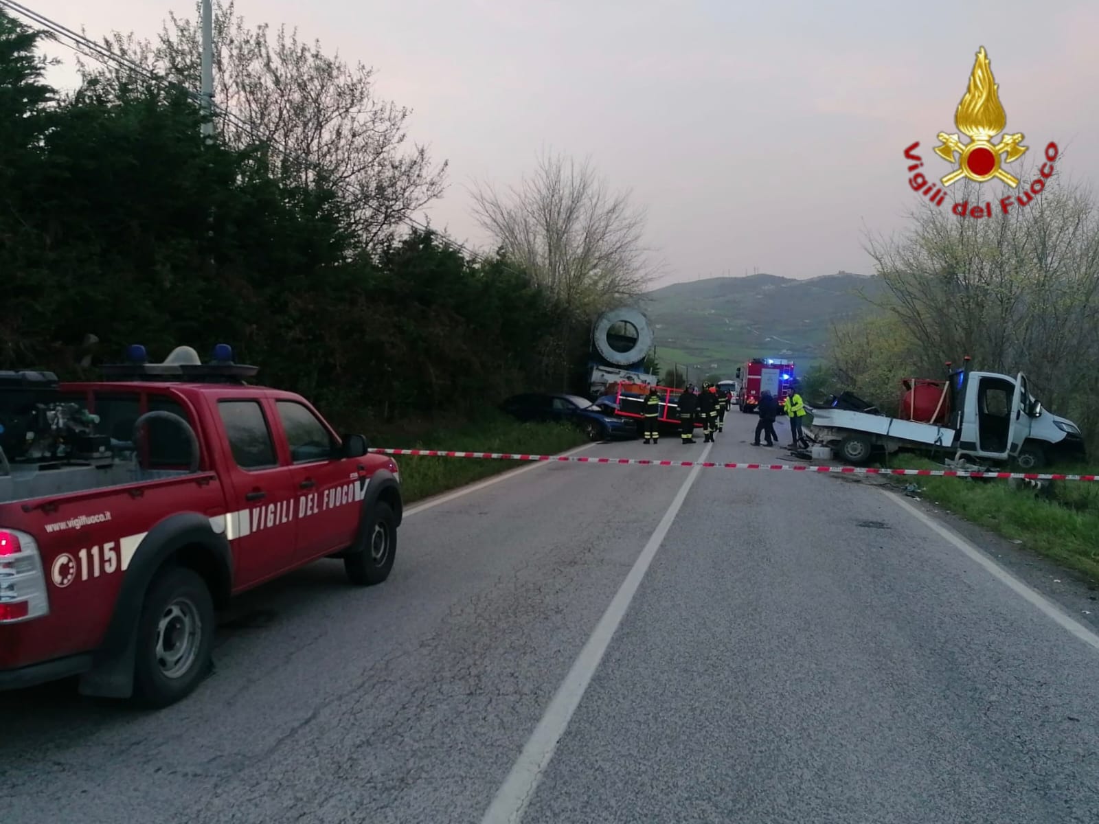 Allertati dal servizio 118, la centrale operativa ha inviato sul posto la squadra del distaccamento di Grottaminarda. I soccorritori hanno raggiunto il luogo del sinistro che ha visto coinvolti una macchina operatrice specializzata nel trasporto eccezionale di pale eoliche, un’autovettura in transito e un furgone della stessa ditta, impiegato come mezzo di scorta. Per cause in corso di accertamento, la macchina operatrice ha perso il controllo, finendo per urtare i due veicoli.
