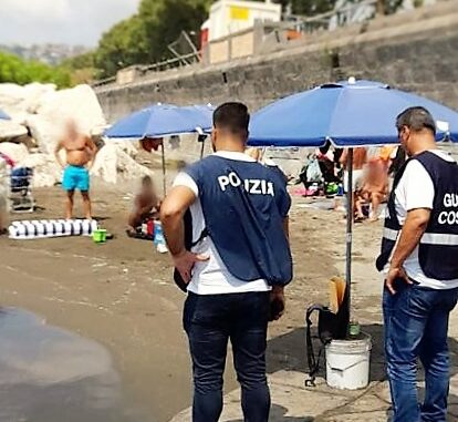 Inoltre, presso il molo sottostante la “colonna spezzata”, in zona piazza Vittoria, gli operatori hanno denunciato un 46enne napoletano per deturpamento e imbrattamento di cose altrui, invasione di terreni o edifici e abusiva occupazione di spazio demaniale secondo quanto previsto dal Codice della Navigazione, in quanto aveva realizzato uno stabilimento balneare abusivo, noleggiando sedie ed ombrelloni senza alcun titolo autorizzativo; infine, l’attrezzatura, costituita da 118 sedie e 21 ombrelloni, è stata sequestrata.