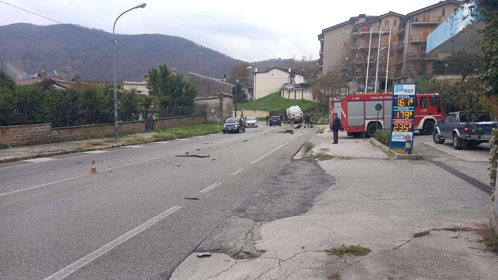 L’incidente ha causato ulteriori complicazioni: a seguito dell’impatto, il serbatoio del camion ha riportato un foro, con conseguente perdita di gasolio lungo tutta la carreggiata. Questo ha reso necessarie operazioni di messa in sicurezza da parte dei Vigili del Fuoco, intervenuti immediatamente sul posto data anche la natura speciale del carico trasportato dal mezzo pesante, che ha aumentato il livello di allerta.
