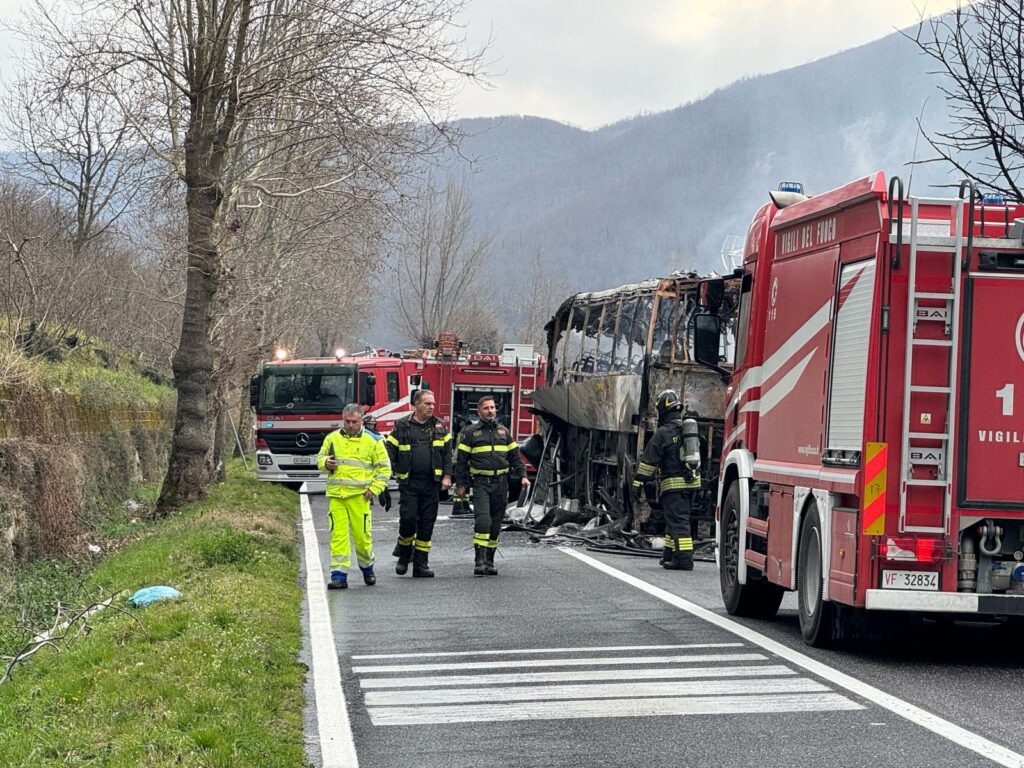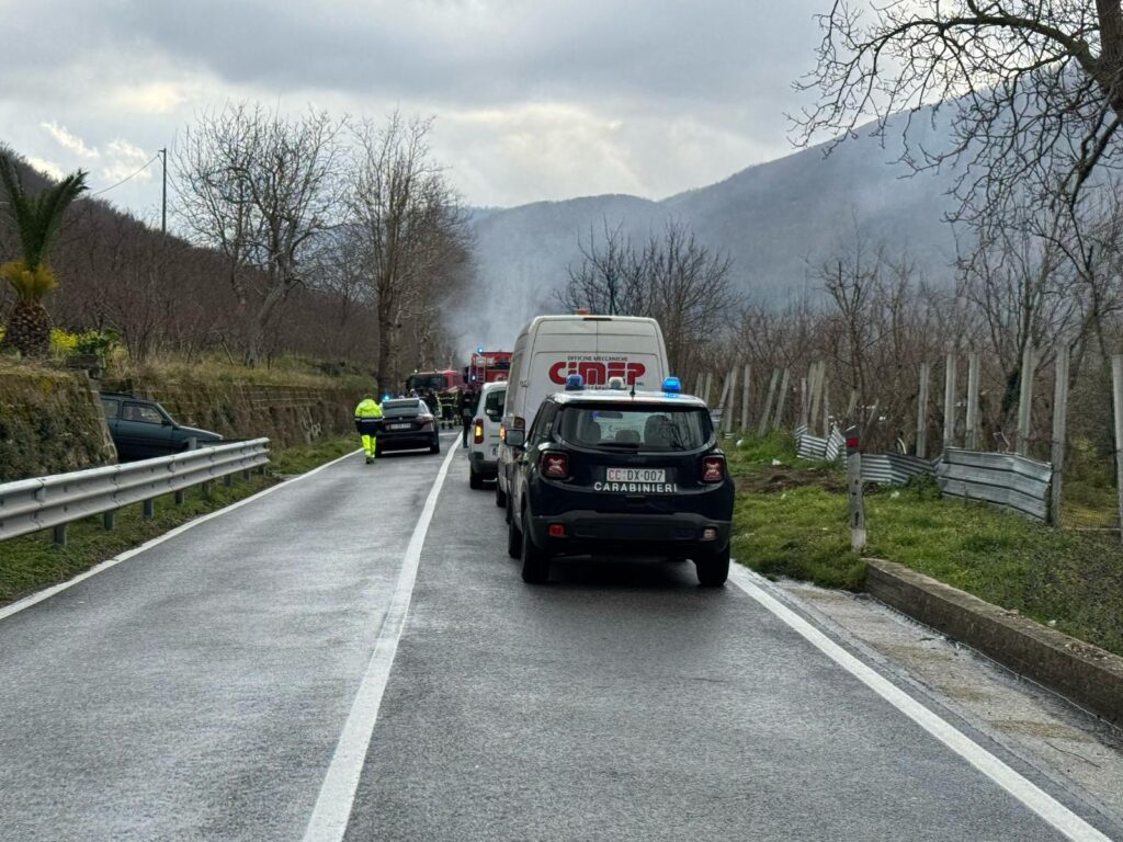 Sul posto sono immediatamente intervenuti i Carabinieri della Compagnia di Baiano e la Polizia Municipale di Mugnano del Cardinale per gestire la situazione e garantire la sicurezza dell’area. I Vigili del Fuoco di Avellino hanno lavorato per spegnere l’incendio e mettere in sicurezza la zona, mentre il tratto stradale è stato temporaneamente chiuso al traffico per consentire le operazioni di soccorso.