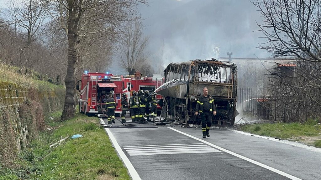 – Attimi di tensione questa mattina intorno alle 11:30 lungo la Strada Statale 7 bis, conosciuta come via Nazionale delle Puglie. Un autobus dell’Air ha preso improvvisamente fuoco poco dopo il cimitero di Mugnano, in direzione Avellino. Fortunatamente, il conducente, che viaggiava senza passeggeri a bordo a causa di un guasto precedente, è riuscito a mettersi in salvo prima che le fiamme avvolgessero l’intero mezzo.
