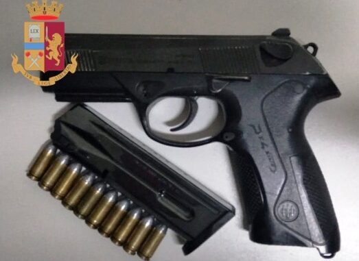 Stanotte i Falchi della Squadra Mobile, durante il servizio di controllo del territorio, hanno controllato in largo Sermoneta una persona a bordo di uno scooter trovandola in possesso di una pistola Beretta cal. 9×21 con matricola abrasa con 10 cartucce.