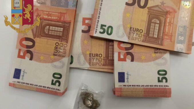 I poliziotti lo hanno bloccato trovandolo in possesso di una bustina contenente circa un grammo di marijuana e 3 involucri contenenti circa 0,5 grammi di cocaina; inoltre, hanno effettuato un controllo presso la sua abitazione dove hanno rinvenuto 7950 euro in banconote risultate false.