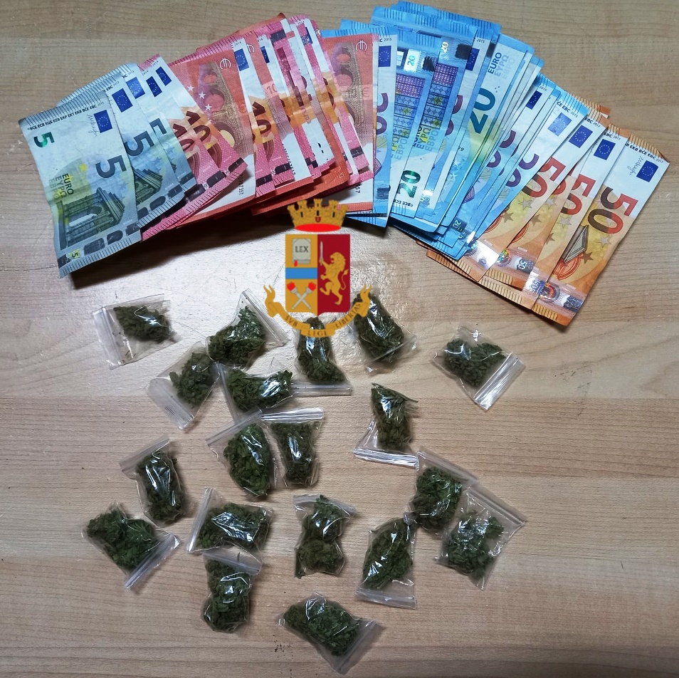 I poliziotti lo hanno raggiunto e bloccato trovandolo in possesso di 695 euro mentre, nell’intercapedine, hanno rinvenuto 19 bustine contenenti 30 grammi circa di marijuana.