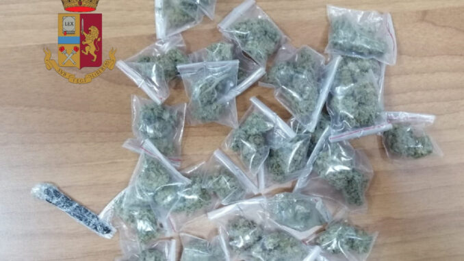 Il poliziotto ha inseguito l’uomo a piedi e, grazie al supporto di una volante del Commissariato Secondigliano, lo ha raggiunto e bloccato; inoltre, gli operatori sono ritornati davanti al palazzo dove l’uomo aveva effettuato lo scambio ed hanno rinvenuto una busta contenente 28 involucri con 33 grammi circa di marijuana ed una stecca di hashish del peso di circa un grammo.
