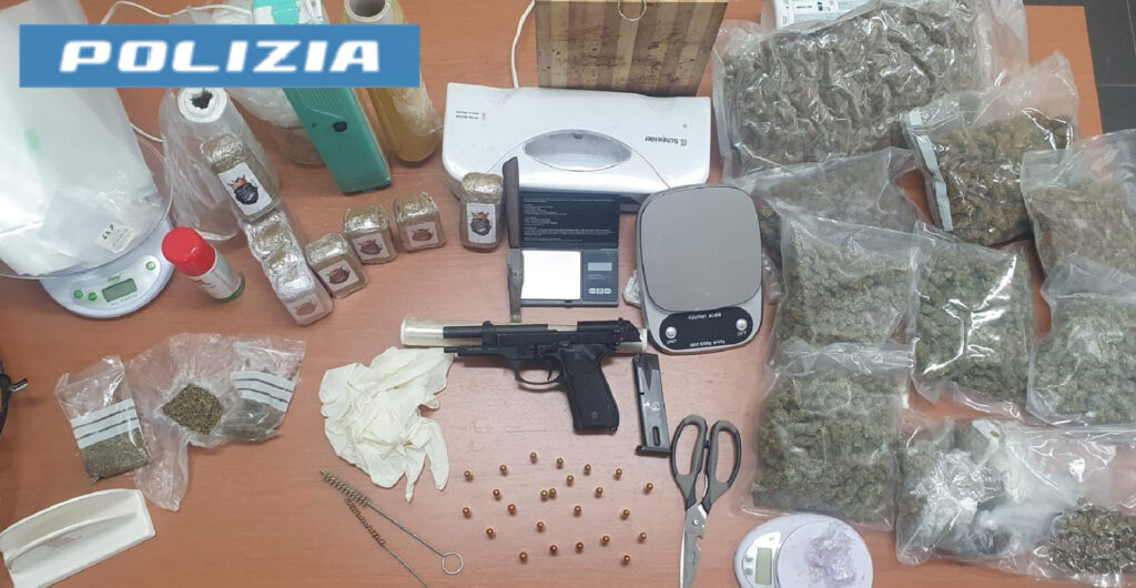 L’intuito investigativo dei poliziotti ha trovato positivo riscontro poiché, con non poche difficoltà, una volta giunti all’interno dello stabile, i poliziotti hanno scoperto un doppiofondo al di sotto del camino della dependance, all’interno del quale era occultata una pistola beretta 9×21 con matricola abrasa, completa di caricatore, 14 cartucce 9×21,10 cartucce 9×19 e diverso materiale per la manutenzione e la cura dell’arma; all’interno dello scantinato, gli operatori hanno rinvenuto, altresì, 10 panetti di hashish del peso di 1 kg circa.