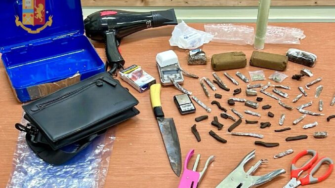 Gli operatori hanno accertato che l’uomo si era appena disfatto di un panetto di hashish di circa 85 grammi e 59 stecche della stessa sostanza stupefacente. Inoltre, gli stessi hanno rinvenuto nell’appartamento altri 2 panetti e mezzo di hashish del peso complessivo di circa 236 grammi, due bustine di marijuana e diverso materiale per il confezionamento.