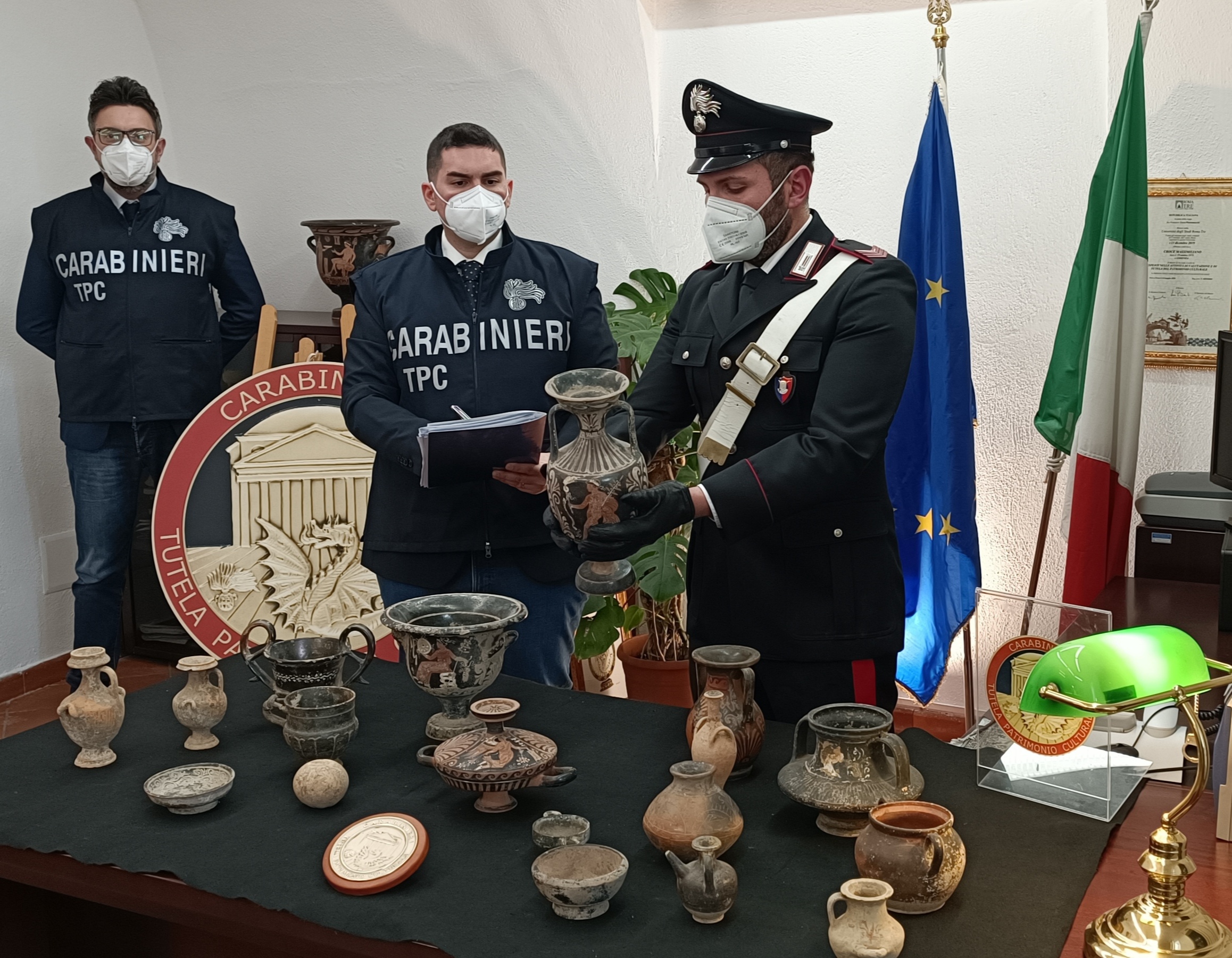 Il 04 aprile 2022, alle ore 10:00, in Nola (NA), il Nucleo Carabinieri Tutela Patrimonio Culturale di Napoli restituirà alla locale Soprintendenza A.B.A.P per l’Area Metropolitana di Napoli, 18 reperti di rilevante interesse archeologico, sequestrati ad un collezionista privato, in quanto provento di reato. I beni, databili tra il V ed il III secolo a.C., sono prevalentemente costituiti da vasellame prelevato da corredi funerari antichi, come crateri, anfore, skyphoi, unguentari, hydriai, ollette e gutti. Rinvenuti inoltre nella disponibilità dell’indagato diversi manufatti di area mesoamericana importati illecitamente.