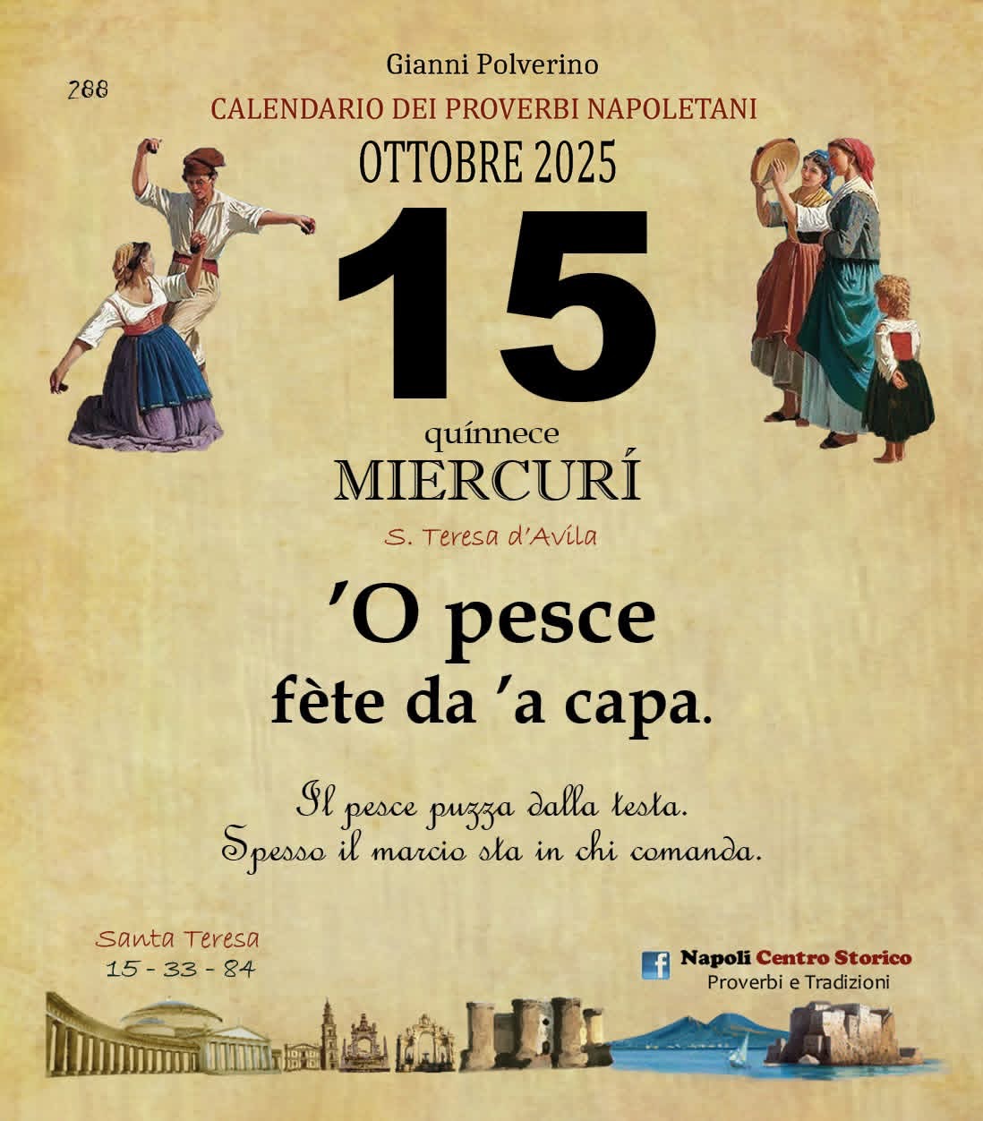 ‘O PRUVERBIO D’ ‘O JUORNO. Mercoledì 15 ottobre 2025.