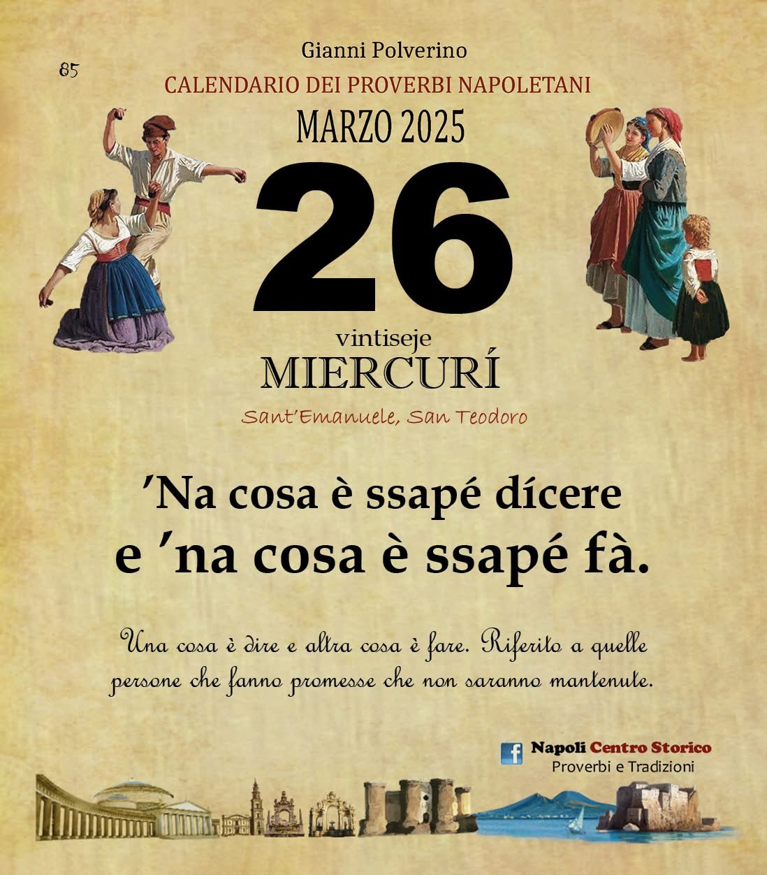 ‘O PRUVERBIO D’ ‘O JUORNO. Mercoledì 26 marzo 2025