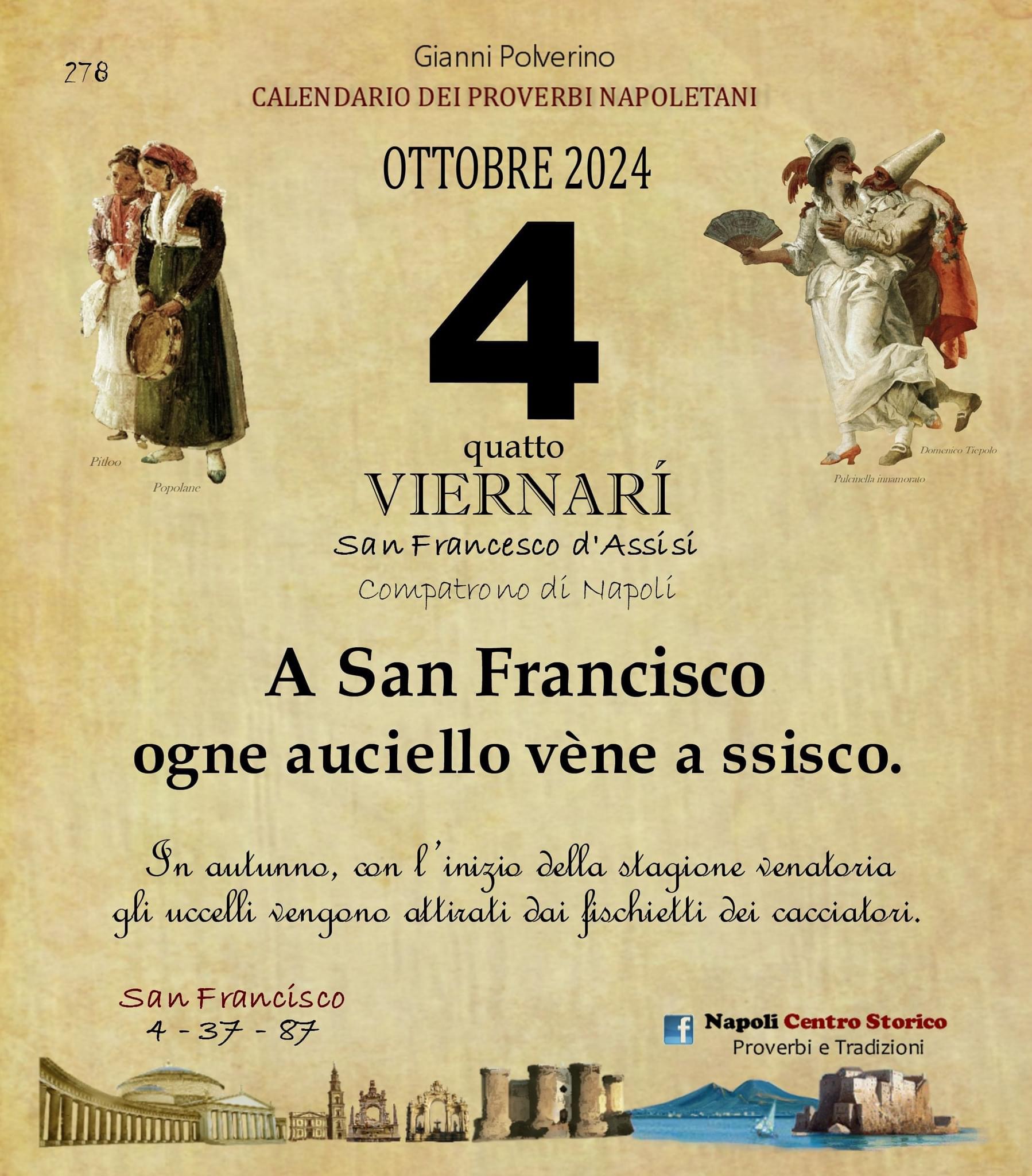‘O PRUVERBIO D’ ‘O JUORNO. Venerdì 4 ottobre 2024