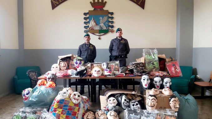 Nel corso di più interventi, i finanzieri del I Gruppo Napoli, tra i quartieri cittadini, Secondigliano, Poggioreale, San Carlo all’Arena, Pendino e le isole del Golfo partenopeo, hanno sequestrato oltre 15.000 articoli, tra maschere, giocattoli, cerchietti e tatuaggi a tema, denunciando 1 responsabile e segnalando amministrativamente 9 soggetti alla Camera di Commercio.
