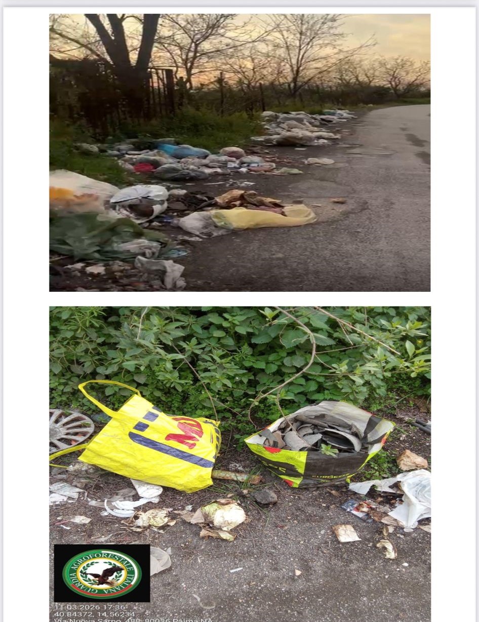 Nel documento, protocollato con il numero 0046/2026, Andrea Palmese – dirigente regionale della Guardia Agroforestale Italiana, matricola 02732 – segnala che l’11 marzo 2026, in via Nuova Sarno 488 a Palma Campania, è stata individuata una discarica a cielo aperto contenente indumenti e rifiuti solidi urbani.