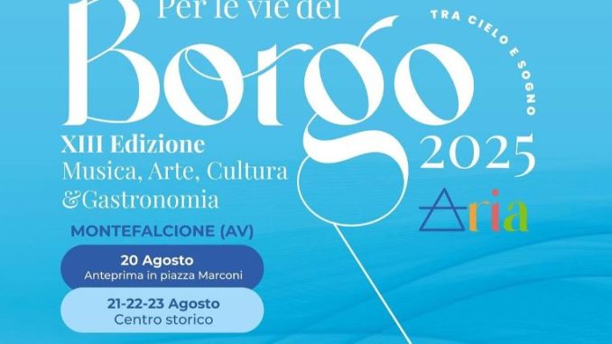 Montefalcione (AV) – La Pro Loco Emilio Ruggiero è pronta a riaccendere la magia di Per Le Vie del Borgo, il Festival internazionale delle culture musicali che dal 21 al 23 agosto 2025 trasformerà il centro storico in un palcoscenico di suoni, luci e suggestioni.