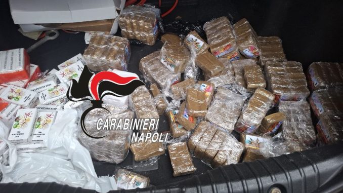 La droga era in un’Alfa Romeo 159 e il carico nel cofano posteriore era semplicemente poggiato sul pianale. Senza vani nascosti, telecomandi o trucchi particolari, l’hashish emanava il suo caratteristico odore pungente.