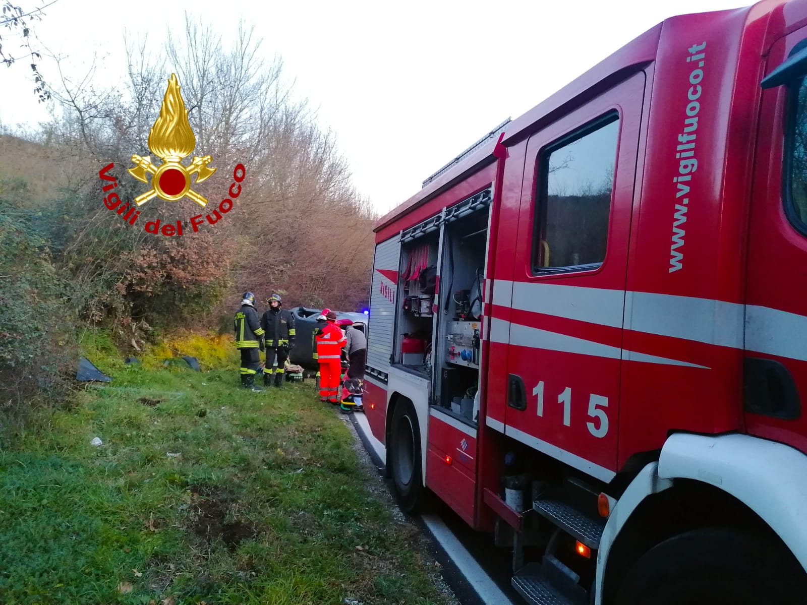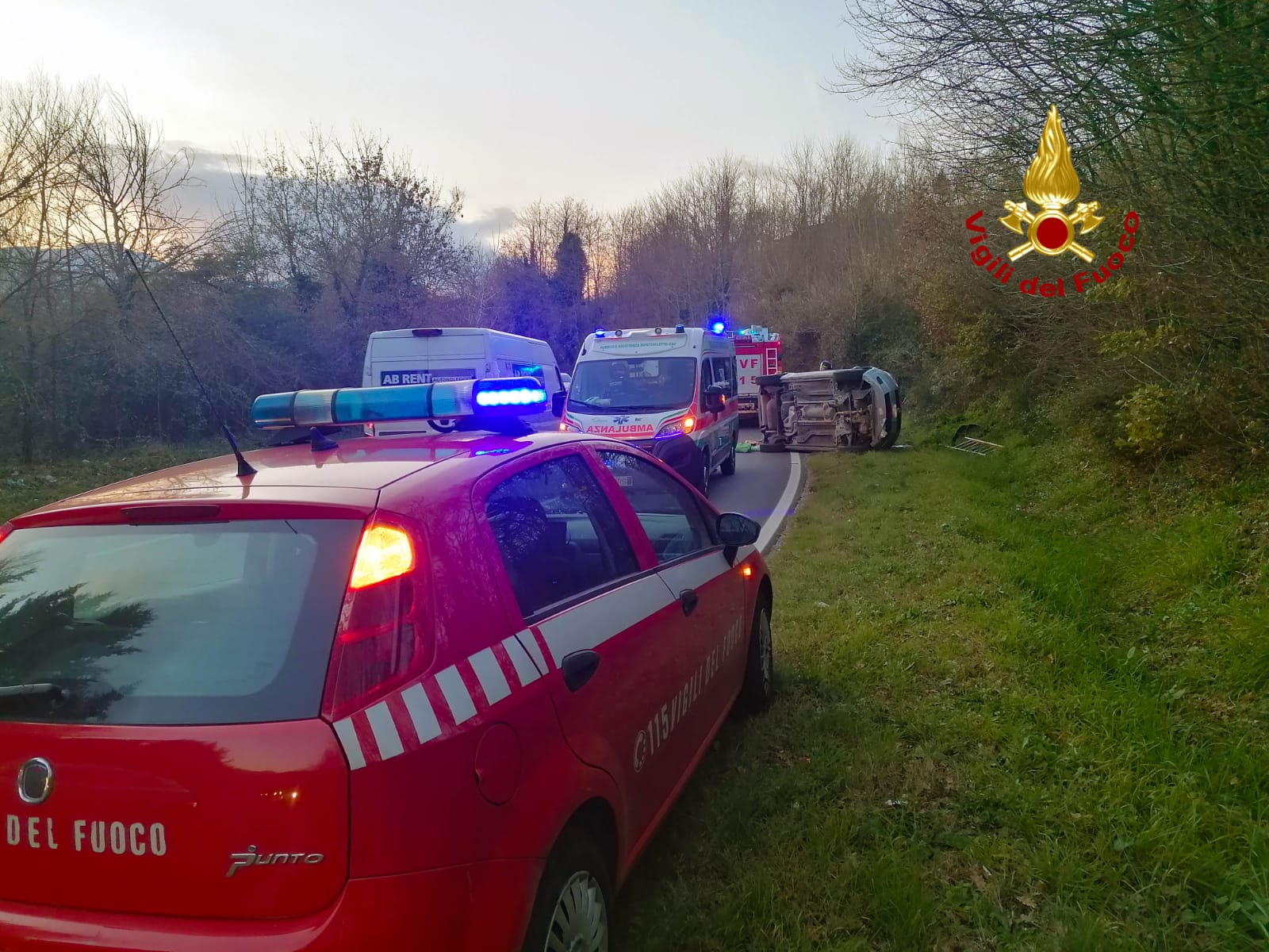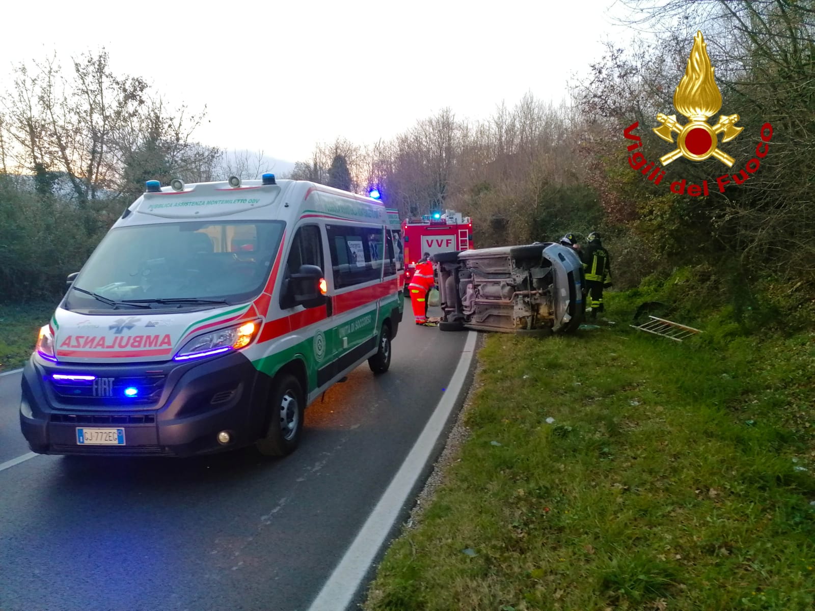 I Vigili del Fuoco di Avellino, alle ore 17’00 di oggi 14 gennaio, sono intervenuti sulla SS 7, via Nazionale Delle Puglie al Km. 302, 700, nel territorio del comune di Prato la Serra, per un incidente stradale che ha visto coinvolta una sola autovettura la quale sbandava e finiva fuori strada ribaltandosi. Al suo interno tre persone anziane, due donne ed un uomo, di cui l’uomo con una donna rimanevano bloccati nell’abitacolo. Gli stessi dopo essere stati liberati venivano affidati alle cure dei sanitari del 118 intervenuti, i quali erano visitati tutti sul posto, ma senza fare ricorso al ricovero ospedaliero. Il veicolo incidentato è stato messo in sicurezza.