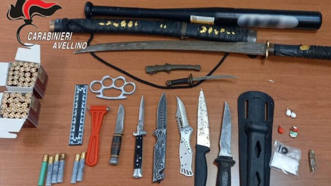 I dubbi degli investigatori hanno trovato conferma all’esito della perquisizione domiciliare eseguita ieri, che ha portato al rinvenimento di 56 munizioni per armi da fuoco, un tirapugni in metallo, 7 coltelli di vario tipo, una “katana” e una mazza da baseball.