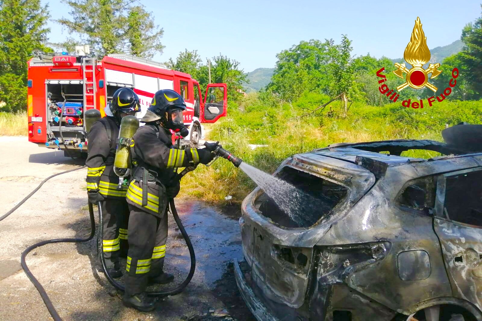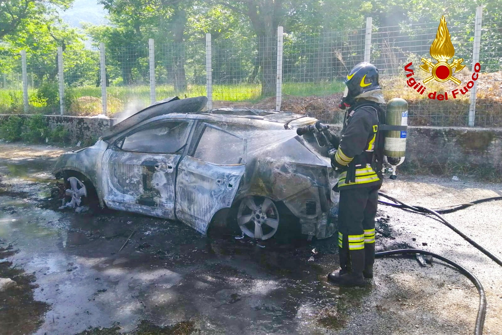 SOLOFRA. Incendiata lauto utilizzata nella rapina alle poste, lintervento dei Vigili del Fuoco