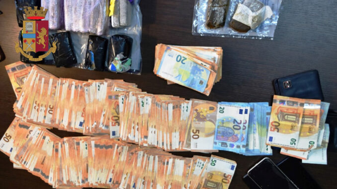 I poliziotti, giunti sul posto, una volta entrati nella stanza dell’uomo, lo hanno sorpreso insieme ad altre due persone trovando su un tavolo due stecche di hashish del peso di circa 190 grammi e 34.920 euro in contanti.