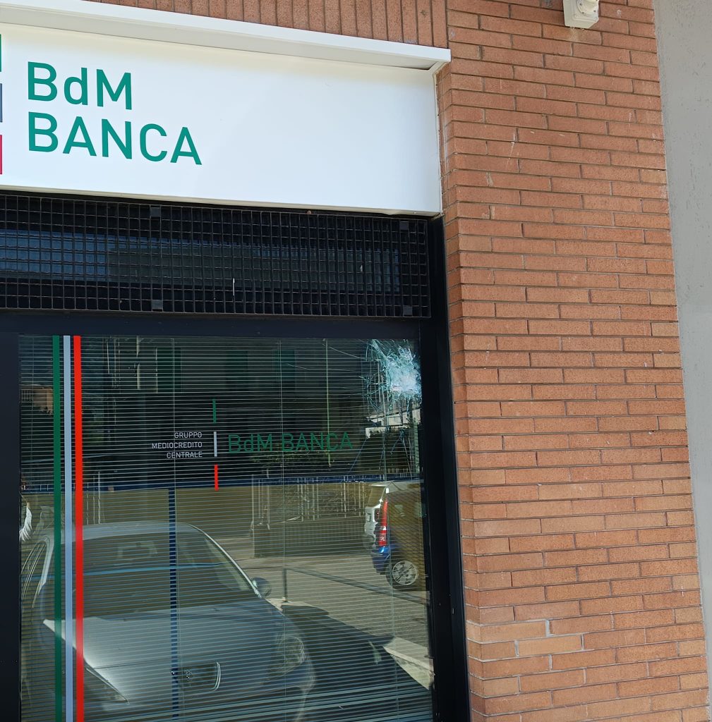 Tentativo di furto nella notte presso la filiale BdM Banca, appartenente al Gruppo Mediocredito Centrale, situata in via Lippiello a Baiano. Ignoti malviventi hanno cercato di forzare l’ingresso, tentando di scardinare le vetrate blindate che proteggono l’accesso all’istituto bancario.