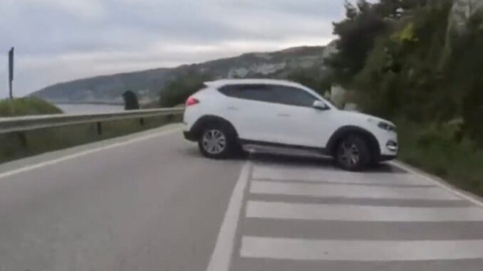 Terrore sulla provinciale: auto fa inversione di marcia in curva e travolge il motociclista. Il video dellimpatto
