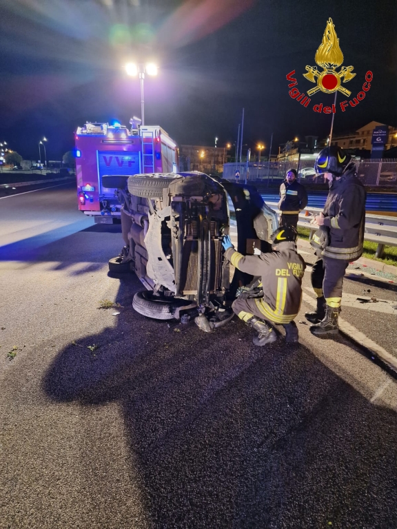 I Vigili del Fuoco di Avellino alle ore 04’40 della notte appena trascorsa sono intervenuti a Torrette di Mercogliano, nei pressi della rotonda vicino al casello autostradale, per un incidente stradale che ha visto coinvolta una sola autovettura, la quale sbandava e si ribaltava. Alla guida dell’auto una ragazza di 24 anni originaria di Pietrastornina che rimaneva bloccata nell’abitacolo. La stessa dopo essere stata liberata veniva affidata ai sanitari del 118 intervenuti i quali la trasportavano presso l’ospedale Moscati di Avellino per essere sottoposta a cure mediche. Il veicolo incidentato è stato messo in sicurezza.