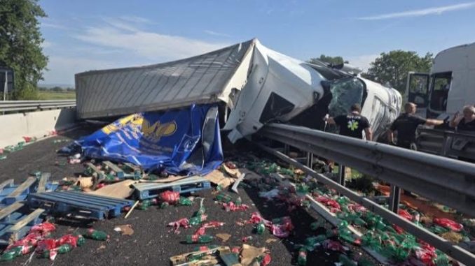 Il mezzo pesante, che trasportava centinaia di bottiglie d’acqua minerale, si è ribaltato autonomamente, per cause ancora al vaglio della Polizia Stradale di Orvieto. La cabina del tir si è schiantata violentemente contro il guard rail centrale, schiacciandosi su un lato e finendo per occupare anche parte della corsia sud. Il carico, completamente disperso sull’asfalto, ha provocato gravi disagi alla circolazione in entrambe le direzioni dell’autostrada.
