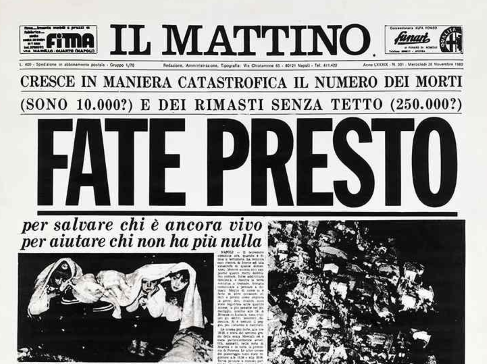 Il ritardo nei soccorsi fu evidente e divenne una ferita civile oltre che umana. Il 26 novembre 1980, il Presidente della Repubblica Sandro Pertini, dopo aver visitato le zone colpite, denunciò pubblicamente le inefficienze nella gestione dell’emergenza. Lo stesso giorno, il quotidiano Il Mattino uscì con la celebre prima pagina: «FATE PRESTO».