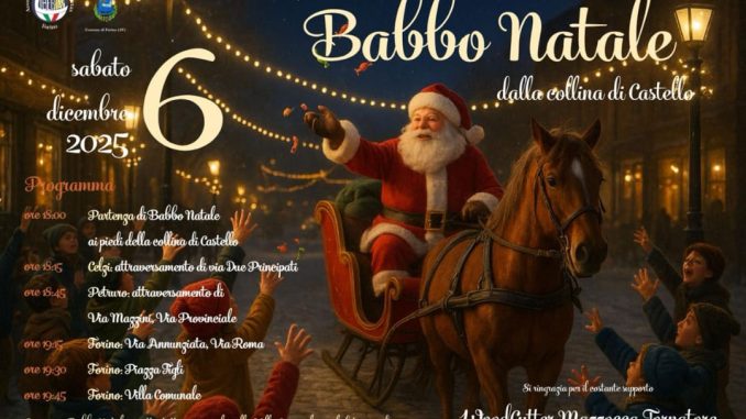 Nel pomeriggio, il pezzo forte: l’organizzazione, da parte della Libertas Forino, della 43ª edizione della Discesa di Babbo Natale in paese, il quale, passando tra le frazioni di Castello, Celzi e Petruro, e con arrivo a Forino alle ore 20.00, porterà doni e leccornie a tutti i bambini che accorreranno all’evento.