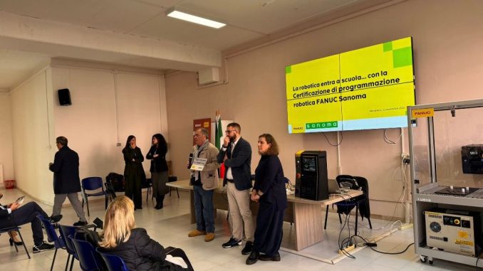 L’appuntamento è stato organizzato in occasione dell’attivazione, presso la scuola, di un Test Center Fanuc, una struttura accreditata in cui studenti e professionisti potranno formarsi e sostenere gli esami per ottenere la Certificazione Robotica Fanuc, riconosciuta a livello internazionale.