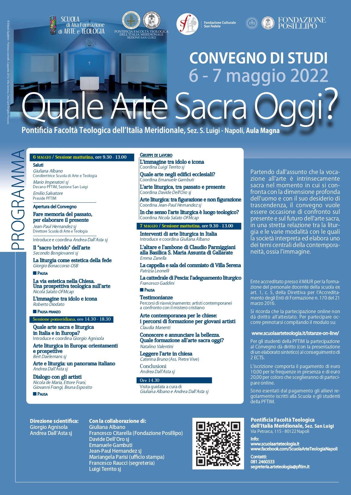 Si svolgerà il 6 e 7 maggio, dalle 9.00 alle 18.30, presso la sede di via Petrarca a Napoli, il primo convegno del 2022 promosso dalla Scuola di Alta Formazione di Arte e Teologia (Safat) della Pontificia Facoltà dell’Italia Meridionale (PFTIM) Sezione San Luigi, in collaborazione con la Fondazione Culturale San Fedele di Milano e con il patrocinio della Fondazione Posillipo.