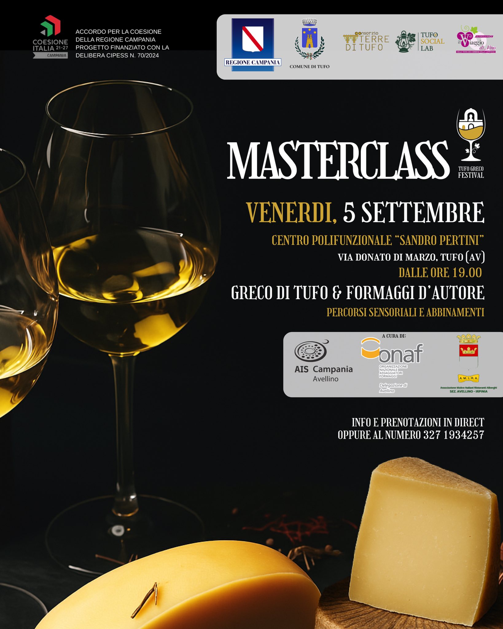 Le masterclass sono a cura di AIS Campania – Delegazione di Avellino, ONAF – Delegazione di Avellino, e AMIRA – Irpinia, realtà da sempre impegnate nella promozione della cultura enogastronomica di qualità.