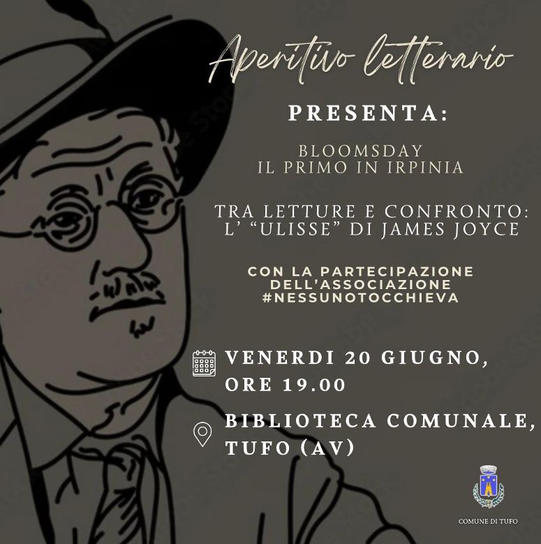 Tufo (AV)  – Il capolavoro modernista per eccellenza arriva in Irpinia: venerdì 20 giugno alle ore 19, presso la Biblioteca Comunale di Tufo (AV), si terrà il primo Bloomsday irpino, una serata dedicata a James Joyce e al suo romanzo “Ulisse”.