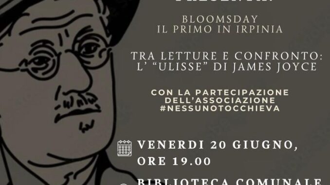 Tufo (AV) – Il capolavoro modernista per eccellenza arriva in Irpinia: venerdì 20 giugno alle ore 19, presso la Biblioteca Comunale di Tufo (AV), si terrà il primo Bloomsday irpino, una serata dedicata a James Joyce e al suo romanzo “Ulisse”.