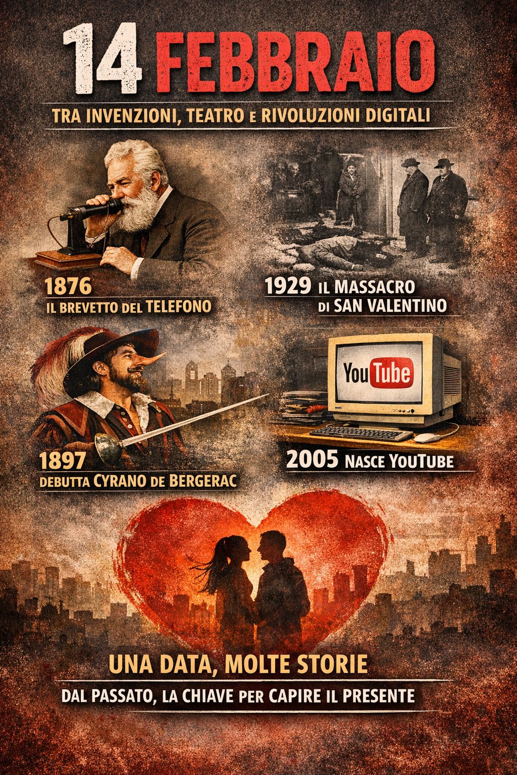 Il 14 febbraio ci ricorda che la storia non è mai un racconto lineare, ma un intreccio di sentimenti, invenzioni, tragedie e rinascite. In una sola data convivono la potenza della comunicazione che avvicina le persone, le ombre della violenza che segnano le epoche e la forza della cultura capace di attraversare i secoli. Guardare a ciò che è accaduto significa comprendere meglio il presente, riconoscendo che ogni giornata porta con sé il peso e la ricchezza di ciò che l’ha preceduta.
