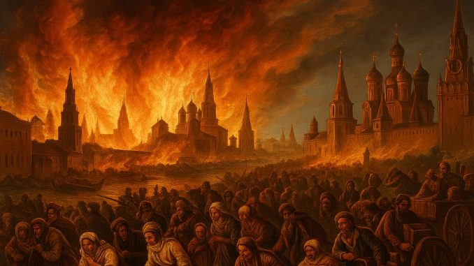 Il 18 settembre 1812 Mosca bruciava. La città, cuore della Russia imperiale, fu devastata da un immenso incendio che distrusse gran parte degli edifici, segnando uno degli episodi più drammatici della campagna di Russia di Napoleone Bonaparte.