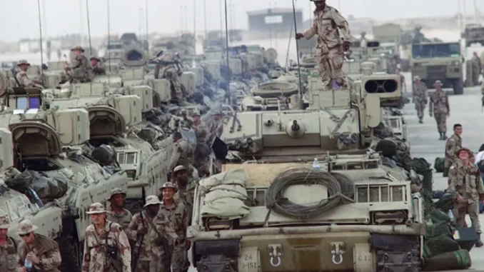 Il 7 agosto 1990, gli USA lanciarono l’Operazione Desert Shield, inviando truppe in Arabia Saudita per proteggere il regno da un’eventuale espansione del conflitto.