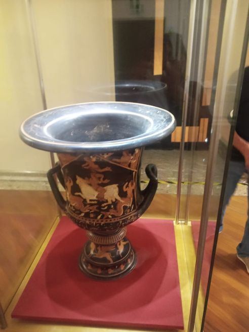 “Il vaso, ritrovato casualmente in Campania ,finì nel museo privato di un uomo ricco degli Stati Uniti, Paul Getty, ed’è stato anche al centro di un vero e proprio giallo internazionale. Esso, venne rinvenuto e trafugato nel 1974 durante uno scavo nell’area dell’antica città sannita di Saticula – Sant’Agata dei Goti. Un operaio campano, lo ritrovò accidentalmente durante i lavori per una condotta fognaria, ne documentò il rinvenimento scattando qualche Polaroid da tenere per ricordo, e successivamente lo vendette a due mercanti locali di arte antica ottenendo in cambio un milione e un maialino. Il vaso, seguendo un copione ricorrente nel traffico illecito di reperti trafugati in Italia, finì in un deposito in Svizzera in attesa di trovare un acquirente, che fu trovato appunto nel ricchissimo americano . Tra la data del trafugamento 1974 e il suo rientro in Italia 2005, passarono 31 anni, e attualmente possiamo ammirarlo in tutta la sua bellezza e integrità, nel Museo Nazionale del Sannio Caudino di Montesarchio. Gestito dall’ Associazione Culturale Sentinelle della Torre, senza scopo di lucro, al fine di promuovere la cultura, e , il legame con il territorio.
