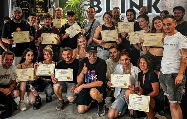 Oltre al lavoro con i clienti, BLINK è un vero e proprio polo formativo. Con i BLINK Seminars, Tsintsaris e il suo team formano artisti emergenti nel tatuaggio, piercing e trucco permanente (PMU), provenienti dalla Grecia, dai Balcani e da altri paesi. I corsi di gruppo, organizzati ogni due mesi con circa 30 partecipanti, combinano teoria, dimostrazioni dal vivo ed esercitazioni pratiche. Durante tutto l’anno è disponibile anche la formazione individuale, e tutti i partecipanti ricevono un Certificate of Completion riconosciuto dai partner del settore in Grecia e all’estero.
