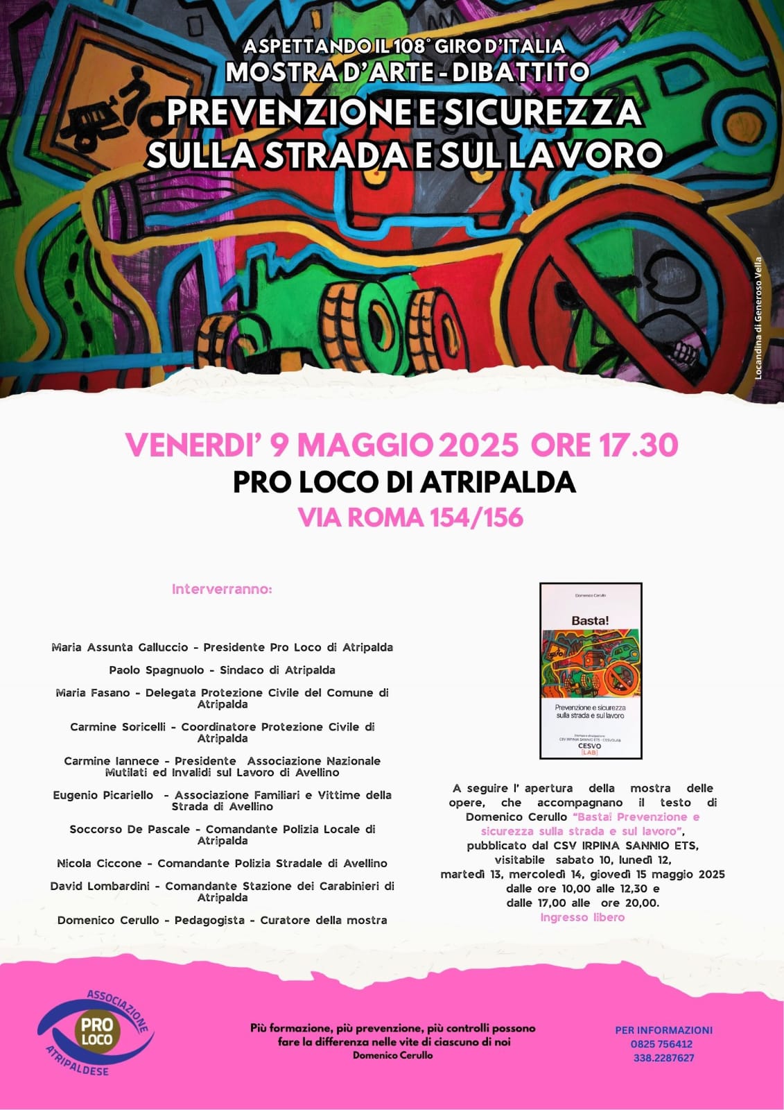 A seguire, l’inaugurazione della mostra d’arte ispirata al testo “Basta! Prevenzione e sicurezza sulla strada e sul lavoro” di Domenico Cerullo, pubblicato da CSV Irpinia Sannio ETS. Le opere esposte accompagneranno e rafforzeranno i messaggi del volume, creando un percorso visivo di forte impatto emotivo e educativo.