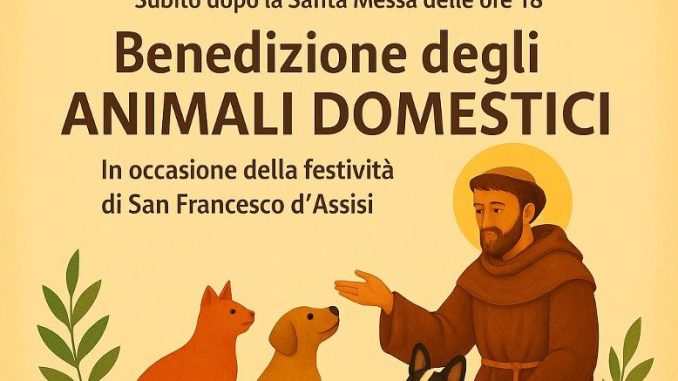 In occasione della festa di San Francesco d’Assisi, patrono degli animali, la Chiesa di San Ciro di Avellino organizza una speciale benedizione per gli amici a quattro zampe. L’appuntamento è fissato per sabato 4 ottobre, subito dopo la Santa Messa delle ore 18.