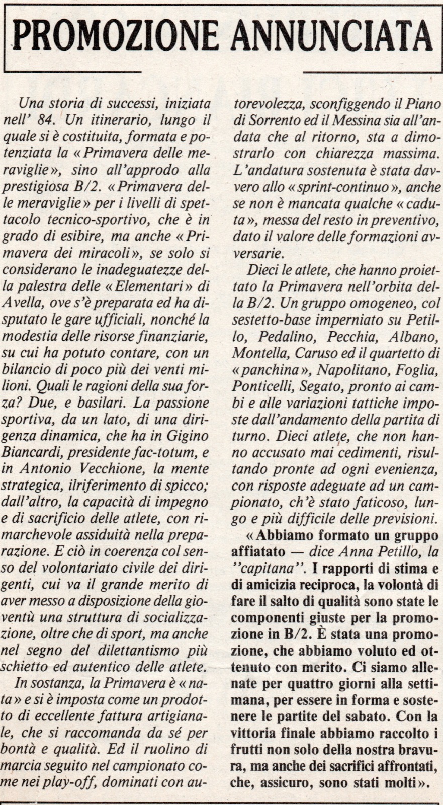 Rafforzare le strutture della VB Primavera, impegnata da 40 anni nell’offrire un prezioso servizio alle ragazze del territorio, è certamente un riconoscimento ma anche un modo per ampliare attività ed esperienze con l’apporto di nuove idee e progetti. Ed è l’invito che rivolgiamo a tutti coloro che hanno in animo di impegnarsi nella pallavolo femminile. La Primavera è sempre stata aperta al contributo di tutti nell’interesse primario dell’emancipazione territoriale.