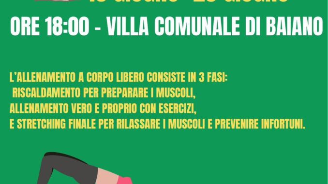 Baiano promuove il benessere all’aperto: due lezioni gratuite di aerobica in Villa Comunale