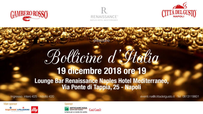 Città del gusto Napoli Gambero Rosso in collaborazione con il Renaissance Naples Hotel Mediterraneo, presenta mercoledì 19 dicembre alle ore 19 “Bollicine d’Italia”, lo spumeggiante evento di Natale della Città del gusto.